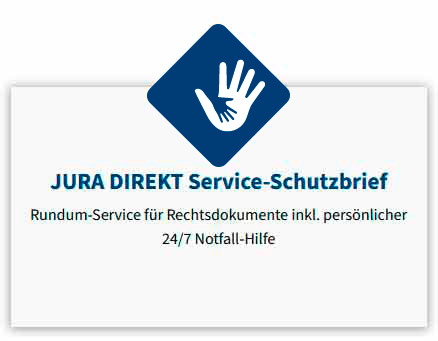 Der TÜV-zertifizierte JURA DIREKT Service-Schutzbrief entlastet Sie und Ihre Familie in Notfallsituationen. 18 Servicepunkte bieten Ihnen einen Rundum-Service. Dauerhaft. Persönlich. Jederzeit.